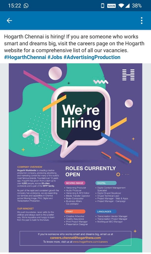 Hello Olbn Hogarth Chennai Is Hiring If You Are Someone Who Works Smart And Dreams Big Visit The Careers Page On The Hogarth Website For A Comprehensive List Of All Our